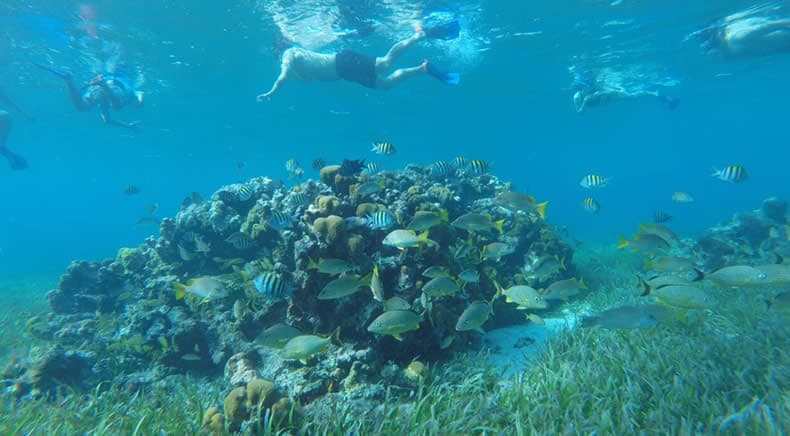 Tour Privado al Cielo Cozumel en una lancha de lujo de 28 pies para un tour exclusivo para sus amigos o familia con una capacidad máxima para 6 personas.
